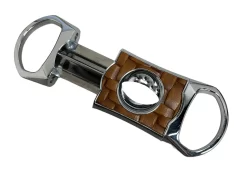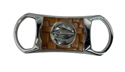 Stainless steel V cutter with Bali leather finish, comes with a matching Bali button snap pouch