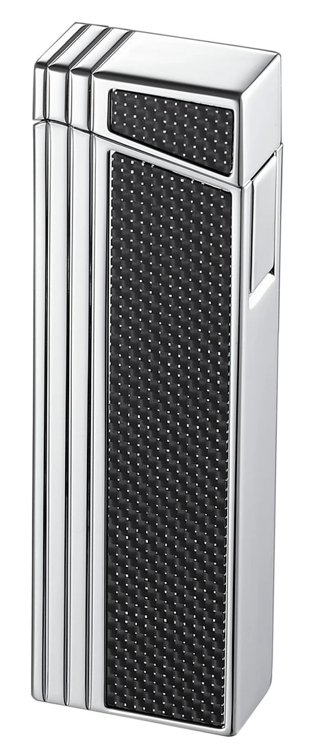 A gentleman always has a light ready to offer to his buddies. With the Caseti Chrome you can always be ready for a smooth one; the butane viewing window allows for no-hassle everyday monitoring of fuel capacity. The black carbon fiber and polished chrome finish are sure to match any man’s tastes, and the lightweight and compact design means this lighter can go anywhere! Even better, the texture of this lighter’s linear vertical exterior means no slip-grip! With one hand full of smokes, who has time for a slippery lighter? In search of a gift for the smoker in your life? Look no further! This sturdy Caseti product comes with a one year warranty, packaged in an easy-to-wrap blue Caseti box, AND has an owner’s manual for the meticulous man. Easy to refill! Black Carbon Fiber with Vertical line design; polished finish; includes butane viewable window Dual Action Ignition; butane refillable (Flip Cover on Bottom Open to Reveal Butane Valve and Flame Adjuster) Approx. Dimensions: 2.88 inches (length) X .75 inches (width) X .25 inches (thickness); Approx. Weight: 2.5 ounces All Caseti products come with a limited one year warranty Packaged in a Blue Caseti gift box and included Owner’s Manual Please note that this product comes shipped with empty butane fuel tank due to shipping regulations.