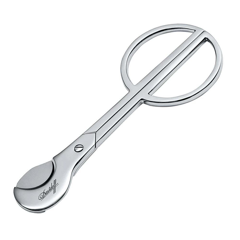 Cut your cigars with surgical precision with this pair of stainless steel cigar scissors! These scissors have the heft and balance of watchmaker and medical tools so you can be sure that your cigar will be perfectly cut and ready to light every time! Smooth Chromed Finish with Davidoff Logo on the blades, and features large handles. Cuts anywhere from 22 to 70 ring gauge. Approximate Dimensions: 0.2 x 5.9 x 2.3 inches; Weighs 0.3 pounds Stainless Steel Construction An ideal gift for any cigar afficinato