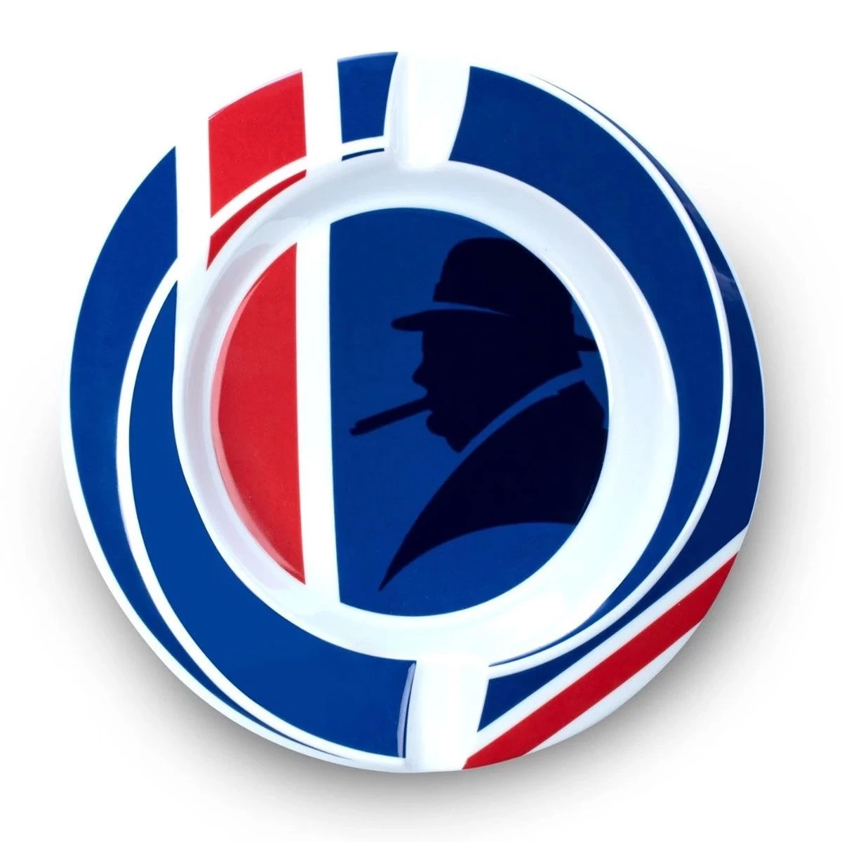 This luxury designed cigar ashtray is certainly eye catching with its bold and patriotic designs featuring the iconic Prime Minister, Winston Churchill. Handcrafted in France by expert Davidoff Craftstmen, this porcelain ashtray is features two cigar rests and a deep basin for long sessions with a few of your good friends White Porcelain Base with Union Jack and Churchill Pattern, and features two cigar rests! Deep Basin holds a large ammount of ash with ease, Porcelain cleans easy Approximate Dimensions: 1.5 x 9.4 inches; Diameter 9.4 inches; 2.6 pounds Handcrafted in France An ideal gift for any cigar afficinato