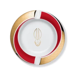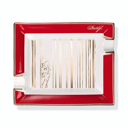 Red and Gold Ceramic Ashtray, depicting a Tiger among the trees on front