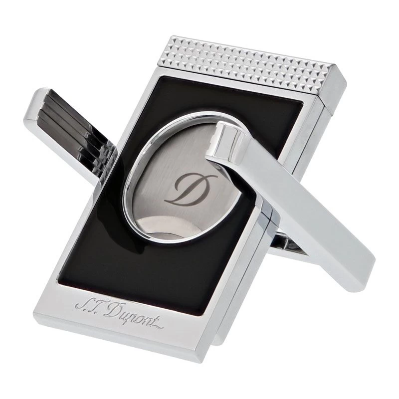 S.T. Dupont Chrome And Matte Black Guillotine Cigar Cutter And Stand