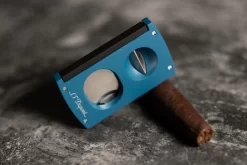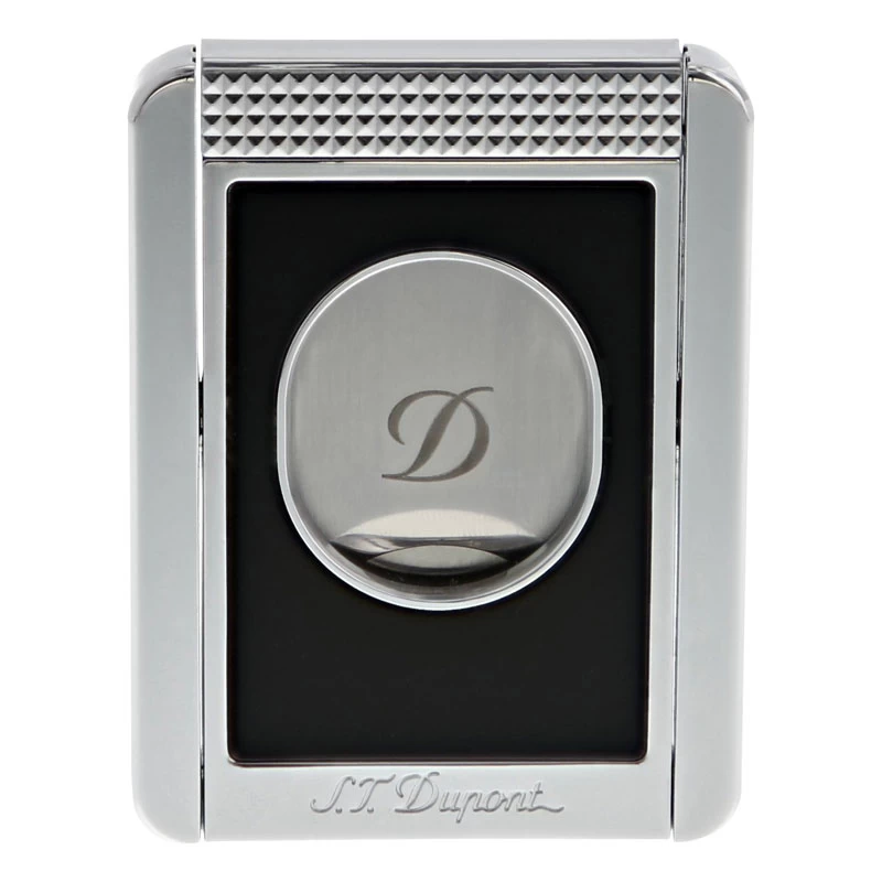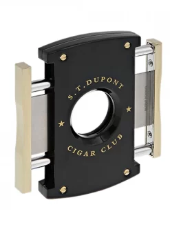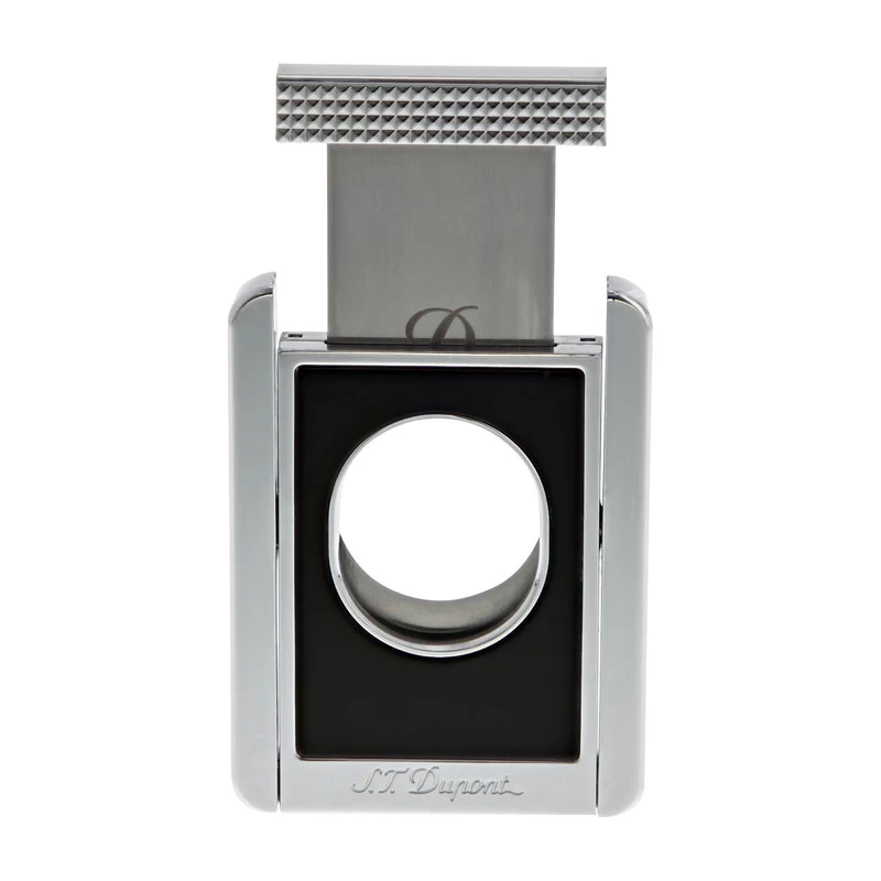 This S.T. Dupont cigar cutter makes an excellent choice for any cigar lover’s collection. The broad face and large opening means you can cut most any cigar that you wish and the convenient rotating handles converts this cutter into a portable cigar rest wherever you may be. Chrome Details and Matte Black Finish; S. T. Dupont Logo on Blade Hinged Handles Fold Out To Form Convenient Cigar Rest Approximate Dimensions: 2.5 x 1.4 x 0.2 inches Single Razor Sharp Blade and Wide Opening Cuts or Clips most Cigars Comes in S. T. Dupont Box; Makes an Excellent Gift for the Cigar Lover in your life
