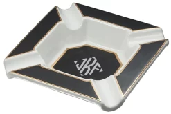 Perfect for gatherings, this large cigar ashtray makes an excellent centerpiece to any cigar-oriented event. The Festus features four large cigar rests and a wide and deep ash basin so you can enjoy your favorite cigars for hours. Each edge is trimmed in gold over the black finish on the white porcelain ashtray Eggshell Finish with Black Finish; Gold Trim Deep Basin Contains Ash Well and is Remarkably Easy to Clean 8.8 x 8.8 x 1.7 inches; 3.1 pounds Four Cigar Rests, One on Each Corner of the Ashtray An excellent addition to any cigar lovers collection, perfect for small to medium sized gatherings with plenty of space for large quantities of ash