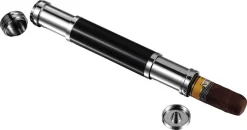 If you can only carry one cigar tube, but enjoy different cigars at different times, the Kinetic II is a perfect case. The stainless steel and carbon fiber tube telescopes at each end, making it one of the most versatile single-carry cases available. From fully contracted at just around 5 inches, you can choose whether to pull out one end for a 6.5-inch tube or fully extend both sides to 8 inches long. From Corona to Churchill, this case will keep your 56 gauge cigars safe until you can enjoy them. Pair this with a Dobrev carbon fiber lighter and MiniBrev cutter for the perfect set. A must-have accessory for travel, golf, or just to keep a cigar on hand, the Kinetic II makes a wonderful gift.