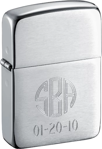 A 1941 Zippo lighter replica is found in gift kit for a unique and nostalgic touch any Zippo fan will appreciate. There is a can of lighter fluid included in this set that allows you to use your lighter right out of the box. Also included is a flint dispenser filled with extra flints for your convenience. Give this set a personal touch by adding a name, initials, or even a short message to its brushed finish by having it engraved when you order.