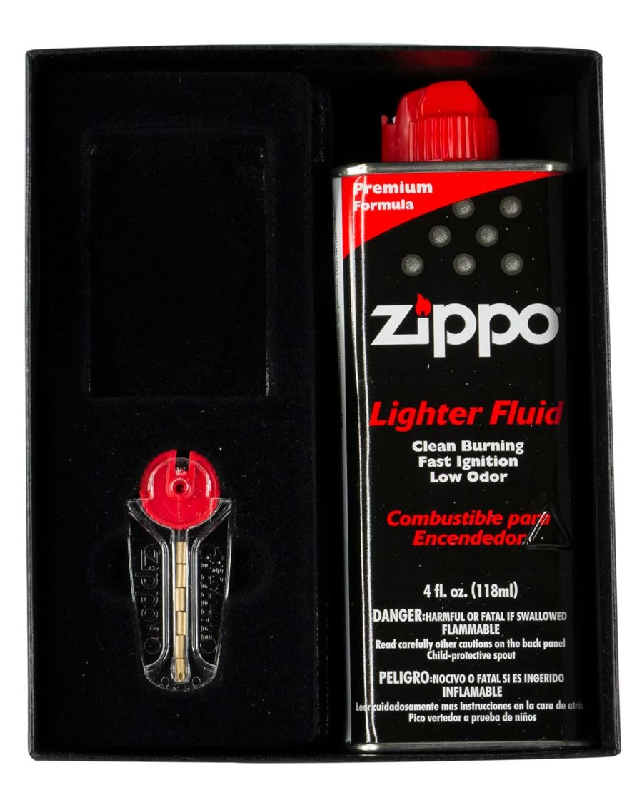 The perfect gift for Zippo fans, this kit allows you to use your new lighter as soon as you get it. You won’t have to go looking for lighter fluid since a four ounce can is included as part of the set. There is even a flint dispenser included for your convenience. Please remember Zippo Lighter is not included.